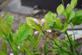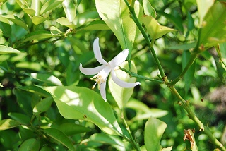 畑に水が溜り野菜がアップアップポンプで水の排出なかなか上手く排出が出来ない水が一か所に集まらないのです高低が途中にあり溝の手入れをしながら水の流れを良くするのですがある程度の排出で諦めました写真はレモンの花