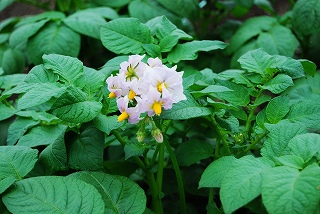 今年も無事に夏野菜の植えつえが終了しましたトマト・ナス・キュウリ・インゲン・シシトウピーマン・オクラ・カボチャ・シロウリ・サニーレタスエダマメ・スイカ・マクアウリ・プリンスメロン・トウモロコシ成長が楽しみですでも残念ながら早くも「根切り虫・立ち枯れ」被害にあっていますこれから出来る範囲で補充していきますオット!草退治と水やりそして芽搔きと追肥もして上手く出来ればいいのですが写真は夏野菜ではないですが「ジャガイモ」の花です
