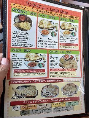 本日のカレー、ナンまたはライス、サラダ、ソフトドリンクが
