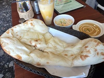 ちぎりながら、カレーにつけて食べると焼きたての香ばしさと辛さが