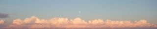 夕方、 東の空を見たらオレンジ色に染まり始めた雲。 ……どんどん色が濃くなってく。「もっと染まるかな~」と思いつつ・ふと気づいたら、 お月さまがいるではないか。 ……と、 ソチラに気を取られてる間に雲は灰色と化してしまった。 ……挙げ句の果て、 ガッカリして証拠写真を撮り忘れる始末。 f--;