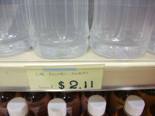 ゴールドコーストにある日本食材店で 買い物をしていたら。 ……なぜか。 ポカリスェットより。 水の方が1.5倍も高く値付けされてる事に気づいた。 何故こんな自体が起きるのか、 しばし考え・そして気がついた。 ポカリスェットは、 日本製みたいな顔してる(?)けど、 どこか人件費の安い国で作ってるか、 または豪国内で作ってるから輸送費や関税がかからないのだ。 ※ちょっと急いでたので上記は未確認ですが ……で、思った。「だったら・なんで水も同じようにしないのだろう?」 先ほどより・かなり長いこと考え込み、 そして気がついた。 ……汲み上げ地を銘柄にしてる水なのに、 海外で生産しちゃっちゃマズイよ、ね。 f^^;