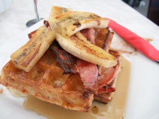 「ちょっと・お休み」のツモリでしたのに、 気がついたら1ヶ月のブランクになってました。 ちょうど1ヶ月目の今日をハズしたら、 もう2度と立ち上がれなくなりそうな気がするので、 とりあえずカタチだけでもって事で。 5月末から夫が(結果的には意味もなく)入院してみたり、 それが済んだら私が熱を出してみたり、 過去の経験から「このペースが続いたら1週間で動けなくなるぞ」な鼻血に見舞われたり その恐怖がヌケ切れない間に歯骨が化膿し 抗生物質で抑え込んだ直後に抜歯してみたり。 過ぎてしまえばケロッとするタチですが、 一時は「どうなるのか?」と先を案じてまいました。 でも、 悪いことが続くのは自分に限ったワケじゃなし、 まして何かのバチが当たったワケでもなし、 ダメな時はジタバタするだけ無駄なのだと思って、 1つずつ対処して乗り越えてみました。 今は、 あの1ヶ月がウソみたいにピンピンしてます。 そして数日前、 カフェでワッフルを注文したら・こんなのが出てきました。 シロップこてこてなワッフル2枚に 軽く焼いたバナナ、そして。 ……少しもシロップを避けることなく、 むしろ喜んでベタベタになっている焼きベーコン。 これを見てギョッとしたのは正統派な日本人です。 私も数年前は見ただけで吐き気すら催したような、 でも今は瞬間ウギャッと思った程度で、 意外とフツ~に食べ始め半分は平らげました。 f^^; ちなみにメルボルンやハワイ在住の友人たちも、「今は平気よ」と笑います。 まぁ「平気」と言えるか言えないかは個々の違いでしょうが、 こういうのを見て、「平気よ」と言えた方が、 少なくとも海外生活は楽しく送れるかなって思います。 ……「郷にいれば郷に従え」ってコトワザ改め、 豪にいれば豪に染まれ、です。 v(^^)