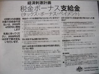 日本では定額給付金というが、 こちらでも税金ボーナス支給金というのが・あるらしい。 ナニが・どんな風に違うか 1つずつ検証するのはベツにして。 …………なんか・ずいぶん違くね?