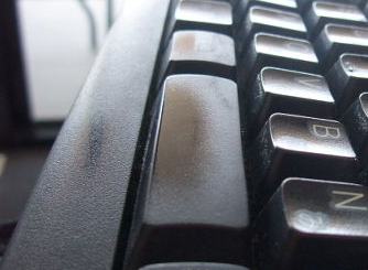 キーボードを打っていて最近 ENTERキーの反応が悪くなりイヂイヂが募っていた。 ……なんせヒラガナ入力、 それも完全なブラインドタッチは(死ぬまで)修得できない 中途半端な早撃ちマック(?)なので、 キートップにヒラガナが印字されてないキーボードは使えない。 完全に壊れる前に手を打たねば・と思いPCショップに電話したら、 なんと神の声。「あ、うちに1台余ってますけど?」 なんでもいい、 とにかくソレを確保させて戴くことに。でも。 キーの配置は・ほとんど一緒なのに、 押した感じや指に触れた感触がビミョ~に違う。 ……こういうの、 具体的にはキーボードと包丁と車って、 身体に馴染むまで いつもの事がいつも通りできずに苦労するのが常。 しかし(帰国時にノートを使う時以外)、「この緊張感は久しぶりだなぁ」と思いつつ古いキーボードを見たら。 ……SPACEキーの頭が、テカテカ。 f^^; こんなになるまで使い込んでいたのだから、 そりゃぁ新しいのにナジムまで・それなりに大変だろう。 f--;