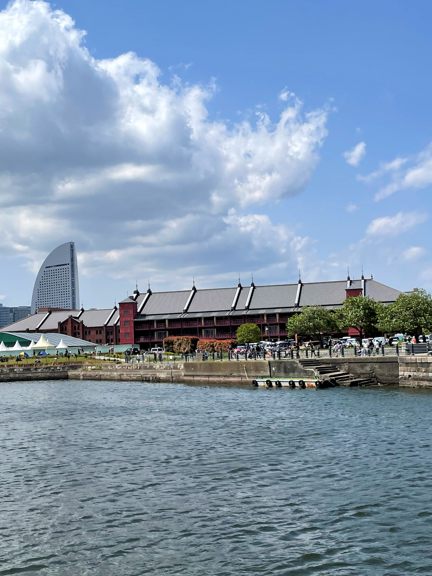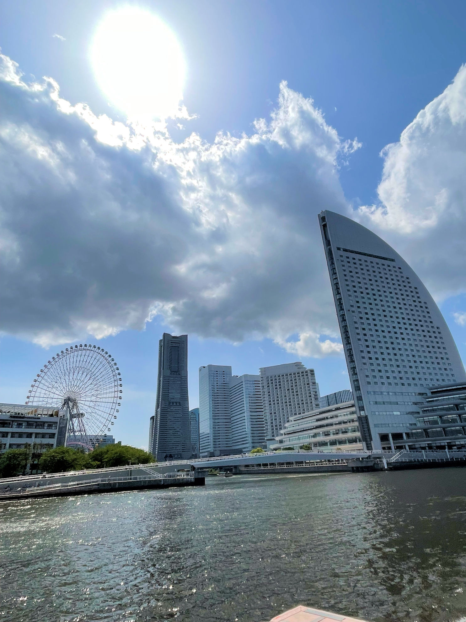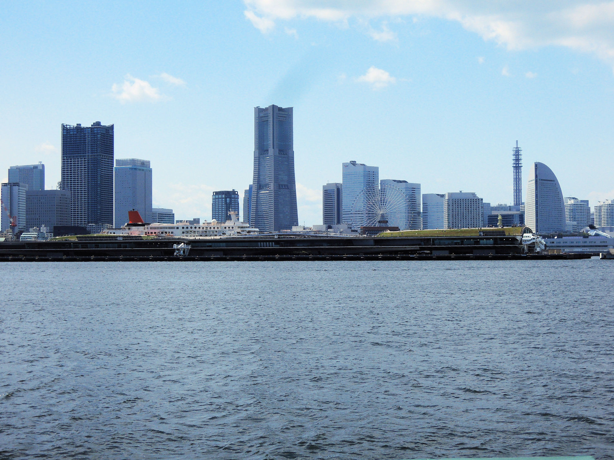 大さん橋の向こうにみなとみらい地区が