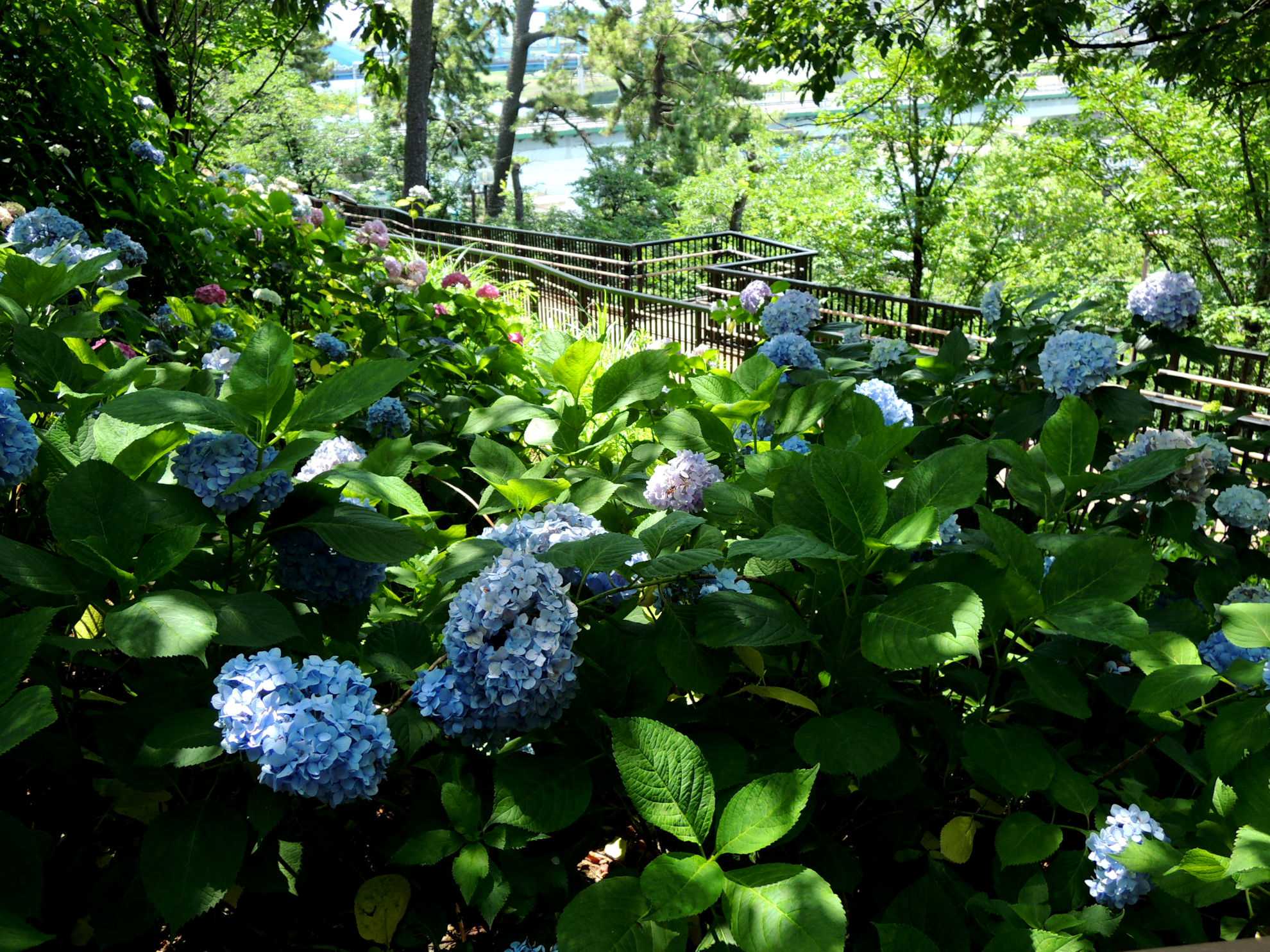 多摩川に沿う丘陵地にあじさい園