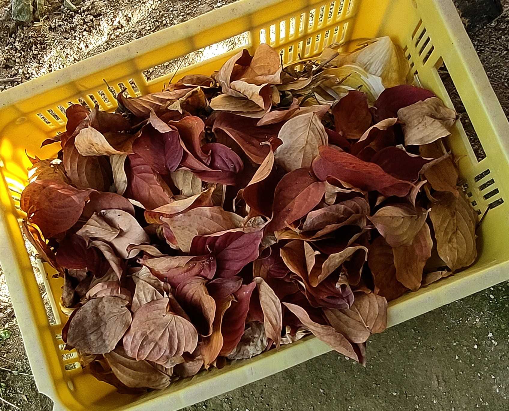 I just add leftover oilcake fertilizer and chopped banana peels to the collected leaves, add a little water, and mix.