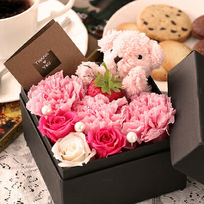 ふたを開けるとかわいいくまちゃんが、アロマの香りとともにでてくる♪母の日ギフト・女性へのプレゼントに最適!【送料無料】咲き続けるお花と◆香りのストロベリーベアー(プリザーブドフラワー)母の日プレゼントに最適♪【母の日特集2007】