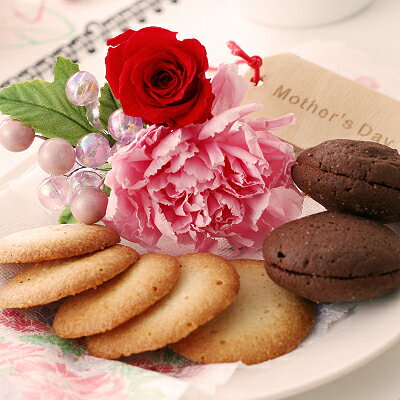 母の日のプレゼントに最適♪プリザーブドフラワーとお菓子が楽しめるセット【送料無料】クッキー&プリザーブドフラワーギフトボックス 母の日のプレゼントに最適♪【母の日特集2007】