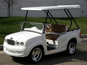 新年早々、びっくり!した写真をみました!ゴルフ場で利用するカートですが、こんな高級なゴルフカートがあるなんて!!革シート、AM/FMラジオ、CDプレーヤー、ウッドパネル、ドリンクホルダー付き。さらに、12インチの足回りにはアルミホイール。すごい!こんなカートに乗れてラウンドできたら、楽しいかも(笑)でも、2サム用ですね。このカート・・・。