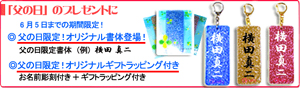 「父の日」のプレゼントは決まりましたか?ゴルフ好きのお父さんにキャディバッグにつけるGolfyオリジナルのネームプレートをプレゼントしてみては?今回、父の日限定書体(行書体)が登場!ネームプレートに、父の日限定書体でお名前の彫刻ができます。とくにオススメなのが、ブルーのネームプレートに父の日限定書体でホワイトの文字色でお名前の彫刻をすると、とってもカッコイイ、ネームプレートになります。さらに、ギフトラッピング付き&ギフト配送もできます。今年の「父の日」のプレゼントにネームプレートで。▼父の日限定 お名前&ギフトラッピング付きネームプレートhttp://www.golfy.co.jp/deco/deco_name_father.html