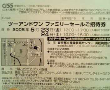 ゴルフウェアやグッズって、普通に買うと、けっこうお高いです。お安く買える方法のひつとが「ファミリーセール」です。「M・U SPORTS」や「KENZO golf」などのブランドがあるツーアンドワンのファミリーセールが開催されます。会場は、東京都立産業貿易センター。日時は、5月23日(金)12:30~17:00、24日(土)10:00~16:00もちろん、商品はゴルフウェア・グッズ各種がお安く販売されます!いま話題の「STREET@GREEN」もあります。行ってみたい!!▼ツーアンドワンファミリーセール オークションhttp://page9.auctions.yahoo.co.jp/jp/auction/k52649216