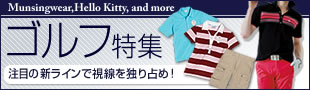 ゴルフって、最近ブームですね。テレビで女優さんやタレントさんがゴルフをやってたり、ゴルフ雑誌もいろいろ発刊されるなど。通販でもゴルフが人気みたいです!ニッセンやベルメゾンでも「ゴルフ特集」が企画されています。人気のゴルフウェアブランド「マンシングウェア」からスタイリッシュな新ライン「DEUX STYLE(ドゥスタイル)」が登場!ハローキティシリーズや旬のアイテムなどいろいろあります。▼ベルメゾン ゴルフグッズ特集http://www.bellemaison.jp/category/sports/golf/golf.html