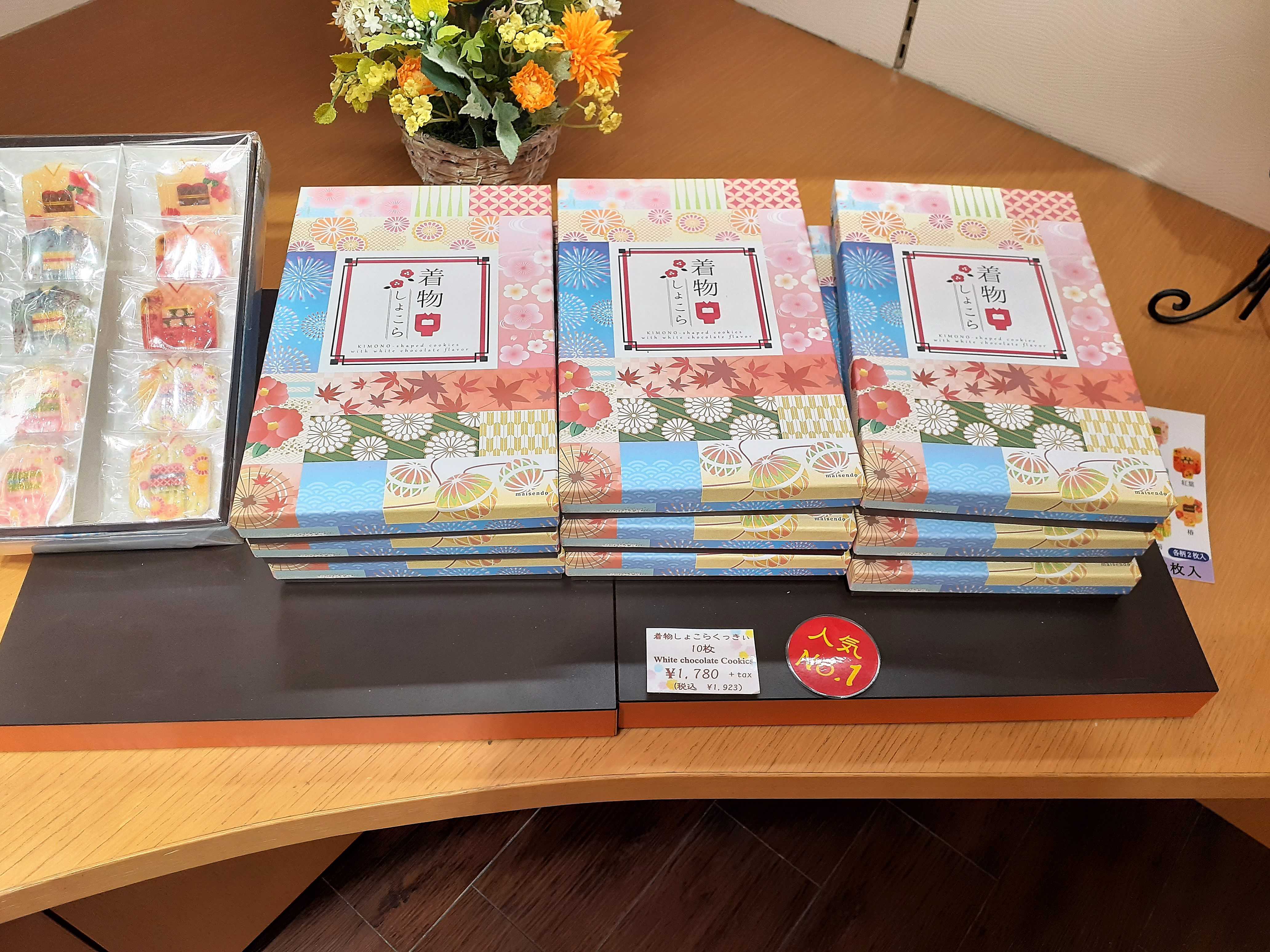 着物しょこら クッキー 3枚入り ホワイトチョコレート 着物 着物型 桜 紅葉 花火 椿 菊 カラフル ショコラ 和風 お菓子 お返し 母の日 退職 お礼 異動 プチギフト 挨拶 餞別 まいこと 舞扇堂 京都
