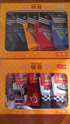イオンビッグに行ったら靴下の福箱が売っていましたアディダスとトミカです明日の初売りも楽しみです