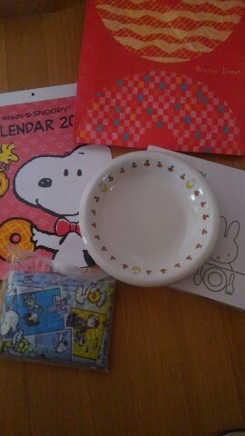 今年もミスドの福袋購入しました~2000円中身は選べずでしたが… ポーチも欲しいほうじゃなかったし、ドリンクジャーも使うのか微妙… でもドーナツ20個は購入できるし、損はないです
