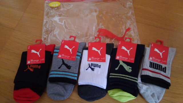 アマゾンでPUMAの子供用靴下の福袋があったので購入しましたサイズ21から23センチ、価格は1000円ほどです。 ふつうにかっこよくて、使えそう 最近キャラものを卒業して、こういうものを欲しがるようになった1年生の息子 服も福袋が得なのでそろえちゃいます 【送料無料/2016年福袋】PUMA(プーマ)中綿コートなどお得な男の子6点入り福袋(ベンチコ…価格:10,800円(税込、送料込)【2016年福袋】PUMA(プーマ)ウィンドブレーカー上下などお得な男の子4点入り福袋(4点セ…価格:5,400円(税込、送料別)