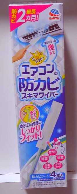 この時期のエアコンはくさい!「エアコン掃除を頼んでやってもらおうよー」「高いからだめー」っというやり取りを行いしぶしぶ自分でできる範囲だけ掃除をするのが毎年恒例となっております。やれそうなことを調べて実践フィルター掃除とかガワを拭いたり100均で見つけた水筒用スポンジでローラー掃除してみたりやりきった!そう思って終え数日がたつ今日は暑くて寝苦しいからエアコン付けよう!嫁さんとの合意の上スイッチオン!くっさー!いや、我慢できないことはないけど臭いよ?そんな悩みを抱えて過ごしていたとき見つけたのがこちらアースらくハピ エアコンの防カビスキマワイパー防カビとかいているが臭いと言うことは「お前はもう、カビている」という突っ込みはしない方向でパッケージ背面はこんな感じ側面はこんな感じ取替え用も売ってます一緒にこちらも使うといいですよとのことケントウシマース内容物はこちら緑の棒が二本と棒につけるシート(4まいご入っております)シートは防カビの薬剤がついているのでしょう濡れております棒、合体!カッチャーン(溝に通すだけです)シートは一枚使用で良いそうです私は右半分拭いた時点で真っ黒だったので2枚使用しました(ひどい場合は2枚と何処かに書いてあったと思います)■感想かなりいい!普段届かない奥の方まで届くのでいつもより掃除範囲が広がりました奥を覗くと黒い部分はまだ見えましたので掃除としてはまだ不十分だとは思いますが今のところ臭いが消えたので満足です効果が最大2ヶ月みたいなので8月にまた掃除しようと思います■失敗したこと素手で作業をしましたが黒い汚れがポロポロ落ちてきて手に付きます薬剤もあまり良くないのか手が痒い手袋をしておいたほうが良いよう思いますきっとこれで気持ちの良い夏が過ごせることでしょうらくハピ エアコンの防カビ スキマワイパー セット 掃除 カビ防止 除去 消臭 除菌(1セット)【らくハピ】[エアコン ワイパー 防カビ 除菌 大掃除 消臭 内部]価格:554円(税込、送料別) (2023/6/4時点)楽天で購入こちらは取り換え用 またの名を 次自分が使う時用らくハピ エアコンの防カビスキマワイパー 取替え用 掃除 カビ防止 除去 消臭 除菌(5枚入)【らくハピ】[エアコン ワイパー 防カビ 除菌 大掃除 消臭 内部]価格:422円(税込、送料別) (2023/6/4時点)楽天で購入