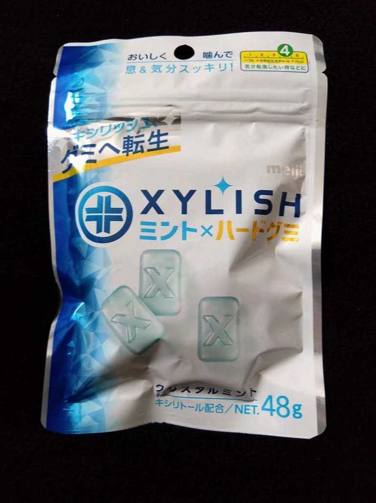 なんだかおもしろいものを発見したので勢いで書いてみるなんとも駄文でございます。キシリッシュグミ クリスタルミントミンティアを買うようになってからはガムを買う機会がなくなりご無沙汰しておりましたがなかなか面白い発想ですねパッケージはこんな感じ裏側はこんな感じかみごたえチャート4 しっかりとした弾力1袋158kcl袋の上から数えた感じだと13粒なので1粒12kclくらいうむ、気にしない現物えーっくすなかなか可愛い見た目になっております香りは ソーダ?なんだかそんな感じの香りがしますさてさて、お味はっとあり?ソーダ?固めでなかなかおいしいぞ?そして口がスースーしてきましたこれはなかなかいけますな。ちょっと慣れるまではスースー感が強い気はします。キシリトールが1袋1.66gと書いていましたがガムみたいに長時間噛まなくても虫歯予防の効果があるのだろうか??謎だま、美味しければなんでもいいや明治 キシリッシュグミ クリスタルミント 48g×10袋 【追跡可能メール便送料無料】 【お菓子】価格:1,540円(税込、送料無料) (2023/6/18時点)楽天で購入