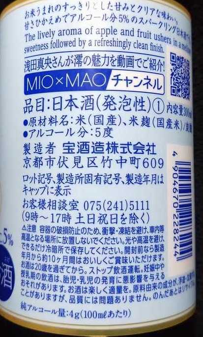 宝酒造 松竹梅 白壁蔵 澪 CLEAR 300ml × 1ケース / 12本 日本酒 ミオ mio 新発売 03/14以降順次発送致します
