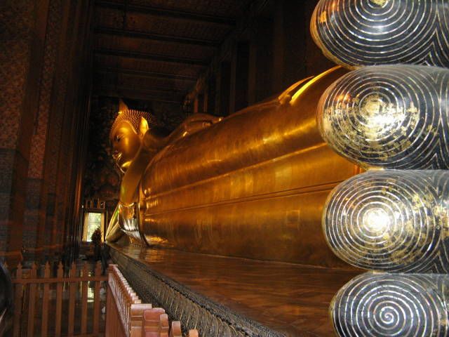 本日はバンコク市内の観光とアユタヤ遺跡に行きます。最初はバンコク市内 3大寺院の一つ「ワット・ポー」です。バンコクで最古の寺院だそうで、お堂に納められている「大寝釈迦像」が有名だそうです。イマイチ大きさが伝わりませんが、高さ15メートル、全長46メートルあります。足の裏には綺麗な細工があります。拡大してみるとこの寺院はタイ古式マッサージの総本山で、寺院の中でマッサージを受けれるのですが、あいにく早朝の為体験出来ませんでした。寺院の中は野良猫がたくさん居て、お坊さんがご飯をあげています。さすが微笑みの国ですな。お次はタイで最高の地位と格式を誇る「ワット・プラケオ」王室の守護寺だそうで、綺麗な装飾が施された寺院です。格式高い寺院なので入り口で服装チェックがあります。男女問わず、露出の高い服装では入場出来ませんのでご注意ください。仏舎利(仏陀の骨)が収められており、大勢の観光客がいます。中にも入ることが出来ます。廊下も豪華ですね~アンコールワットのジオラマがあります。言われてみると建物の形が似ていますね。隣接しているチャックリーマハープラサート宮殿噛まずに読めたら凄いですね(笑)衛兵さん達もたくさんいます。観光を終え外に出ると何やら物騒な感じが・・・当時のタイは反政府グループのよる空港占拠なども有り、王宮前には軍隊が待ち構えていました。シャレの通じない雰囲気がしますね(笑)レストランで昼食を頂きます。ココナッツの香り豊かなグリーンカレーと見た目が激辛な雰囲気ですが、意外にあっさりのフォー食後はアユタヤ遺跡へ移動します。つづく記事が面白かったらポチッとお願いしますにほんブログ村