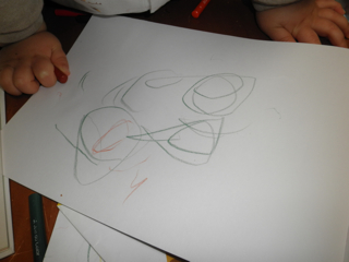 みなちゃん専用のお絵描き帳を買ってあげたので、毎日張り切って開いては、クーピー握りしめてかきかき。