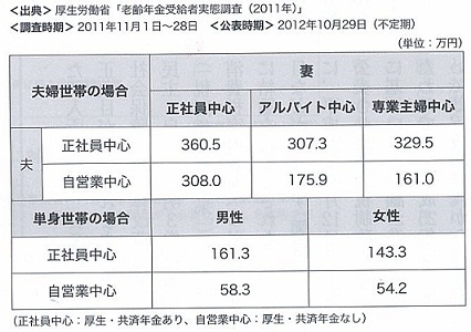 おはようございます今日もファイナンシャルプランナーとして、記事をチェックしてみました!米国株、ダウ反発72ドル高 1万4000ドルに接近 ファイザー高い 【日本経済新聞】ドイツに勝った日本株、円安時代のサインもともる 日本経済研究センター主任研究員 前田昌孝 【日本経済新聞】チョッピーな動きの円相場、アメリカの指標ますます気になる 【ZAI】テーマはドル円からユーロ/ポンドへ 【読売新聞】<TPP>参院選前に政府基本方針 安倍首相意向 【毎日新聞】(アベノミクスって、なに?)景気回復へ膨張路線 【朝日新聞】日本人はインド人、中国人になぜ勝てない? 有名ヘッドハンターが語る"狩人の心得" 【東洋経済】金融機関の「お薦め」で退職金運用、8割強が不満 【日本経済新聞】外食や趣味にお金を使い過ぎ、"二馬力"のメリットを生かせない夫婦が多い! ケース別診断(2)「DINKS」の場合 【ZAI】参考までに。 今日は、「公的年金の平均受取年金額」についての調査表を掲載していきたいと思います。 公的年金の平均受取額を知ることで、保証がどれだけ確保されているのかがわかるため、例えばセカンドライフの資金を準備したり、遺族の生活費などがイメージできるものと思います。 ただ、本データーは平均額のため、実際に受け取れる金額は加入期間や給与等によって違ってきます。また、この金額は年額となっておりますが、実際の支給は2か月に1度となっておりますので、その点も注意が必要です。 厚生年金に加入されていらっしゃる方は、国民年金と、厚生年金の両方が支給されますので、その点にも注意してください。 今年に入ってから、いろいろな年代のいろいろな方とお話しをする機会が、仕事ほかプライベートでも多くなってきている。 そんな中で思うのは、自分より年齢が上の方というよりも、自分より年齢が下の方の意見を聞いてみたいと思うことが多くなってきているのかな?ということ。理由は、これからを担っていくのは、未来を多く見つめられるのは自分より年代が下の人だからということ。 例えば、何かをやるときに、人が一番怖いのは「変化」って言われるんだけど、年齢があがっていけば、やり方、方法に固執し、変化することを極端に嫌ってしまうことが多い。だけど、これからのことを考えていけば、自然と、変化をし、柔軟に考え、今だけがいいのではなく、未来志向でなければならないと思うのだ。一歩、いや、数歩先行く考え方。 いや、書き方が悪いかもしれないが、年齢が上の人の話がということではない。過去をしっている方々とこれからを見つめている方々の話を聞いて、頭が柔軟になるってこと。 ・・・そんな未来志向の視点はもちろん、ファイナンシャルプランナーとして必要な資質であると思うが、人と話すことで学ぶってこともあるのでは?と思うのだ。 そういう意味では、今年も楽しいことが待っていそうな予感がする