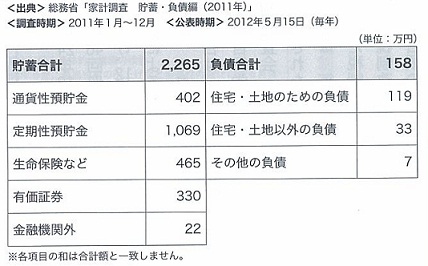 おはようございます今日もファイナンシャルプランナーとして、記事をチェックしてみました。 ドル円は95円方向も、当面の上値は90円75銭 ディーラー歴20年の達人が読む為替 【東洋経済】半分は手堅く運用。それでも年3%を目指す おすすめ投資信託とETFはこれだ! 【DIAMOND ONLINE】個人投資家「株式」に回帰 投信実力ランキング2012 【日本経済新聞】来年度の新規国債、43兆円前後で調整 財務省 【朝日新聞】12年の貿易赤字、過去最大=6.9兆円、燃料輸入が高水準 【時事通信】日本株、貿易統計で探る次の主役 証券部・毛利靖子 【日本経済新聞】暮らし配慮、減税2700億円...税制改正大綱 【読売新聞】大増税時代がやってくる! 復興税、消費税、相続税に控除減、そして保険料アップ... 【J-CASTニュース】公的年金、10年払えばもらえます 第4回 公認会計士・平林亮子 【日本経済新聞】さらに厳しく 年金開始年齢70歳時代に備えよう 経営コンサルタント 岩崎日出俊氏 【日本経済新聞】 相続した住宅を売却、税金はいくら? 【読売新聞】確定申告、医療費控除で税金還付 【読売新聞】企業の社会貢献度、1位ヤマト、2位トヨタ 社会貢献支出額と社会貢献支出比率トップ50 【東洋経済】異色ベンチャーに学生4万人が殺到する理由 型破りのインターンシップで、学生の心わしづかみ 【東洋経済】本社19時施錠!三菱化学の働き方革命 ムダな会議やメールも削減、有給取得率8割へ 【東洋経済】参考までに。 さて、今日は、世帯主が60歳以上の世帯の老後の貯蓄と負債平均実態について、資料を掲載してみたいと思います。 負債のみをかかえている世帯は考慮しておりませので、その点は留意いただきたいのですが、予想されていたものと比較して、もしくは、皆様の現状と比較していかがでしょうか? この表で、セカンドライフの貯蓄と負債のひとつの目安となりますので、どれぐらいの貯蓄をしておけば良いかを考えるひとつの目安になるものと思います。ぜひ、参考になさってください。 今年の目標の一つに、ここ5年ぐらい思いっきりアクセル踏みっぱなし状態、踏まざるを得ないだったので、そこから離れて、力の抜き方を覚えるというのが目標(はたして目標と言えるのだろうか?・・・という点は)となっていて、ついつい、ゆる系、癒し系、のびのび系のものがあると、興味が行ってしまいます。 先日、興味のアンテナが動いたひとつに、図書館でこんな本を見つけました!10パーセント脱力生活 カラダ編 2007日本放送出版協会 いや、こういう本を読むこと自体、力入っているんじゃないの?なんて言われそうですが、固まった思考、パターン、視点を崩すにはもってこい!そんな感じでゆるゆるしております。 それでは、今日はこの辺で