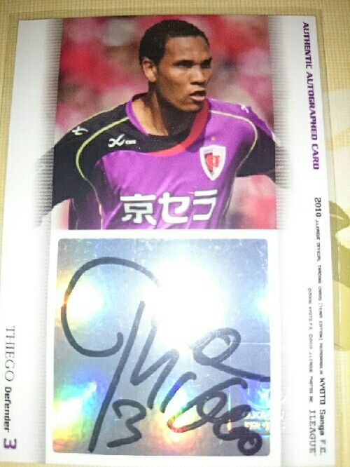 今回も前回と同じく新たに入手したマイコレの紹介をしたいと思います。 こちらです 京都サンガ10TEチエゴです。この選手は半年位しか在籍していない選手でもちろんサインもこの1種類限りなので自分にとっては貴重な1枚となりました。在籍期間が長くなれば長くなるほどサインの枚数が増えてくるので入手しやすくなるのですがこういった選手は入手かが厳しいですね。 では次回は提供リストを更新して報告したいと思います。