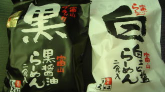 今日のお昼は色エビラーメンと富山ブラックこの間、富山に出張に行った時、富山空港で買って来ました。富山ブラックの歴史は、東海・北陸をご覧下さい。どちらも、麺屋いろはのものです。富山ブラックは大喜とは違ってスープにコクがあります。魚系のだしが利いています。見た目は濃いというか辛そうですが、味はサッパリです。さすが、東京ラーメンショーで2年連続第一位だけのことはありますね。ちなみに、チャーシューはうちで入れたものです。もし、作られる場合は、ネギをやや太く切って入れて下さい。これが富山ブラックですので。(今日はそのことを忘れていました)こちらが、白エビ塩ラーメンです。エビの香りもあって上品なスープです。女性好みの味ですね。白エビは富山湾の名産。寿司などにも使われている高級珍味です。楽天で探したらありました。富山ブラック×2、白エビ塩ラーメン×2で1200円はお買い得です。真面目な富山らしいですね。東京ラーメンショー2009.2010で2年連続第一位!富山ブラック黒醤油らーめんと白エビだし塩らーめんお試しセット 富山らーめん『黒』『白』【4食セット】ブラックが有名になって、まがい物もあるようです。ご注意下さい。