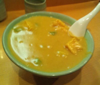 名古屋でカレーうどんを食べてきました。写真が、ちょっと、というか、大分ボケてしまっていますが、こちらは、栄にある「うどんにしき」のカレーうどんです。一般的に、カレーうどんは、だし汁にカレー粉を加えてカレー風味にしたもの、だし汁で延ばした和風カレーをつゆとして用いたうどんですが、ここのカレーうどんは、和風だしの存在がないのです。とにかく、クリーミーで、今までのカレーうどんのイメージを破った逸品です。残念ながら、楽天では見あたらなかったです。是非、現地で食べてみて下さい。700円です。
