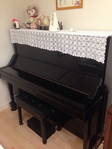 おばあちゃんからのプレゼントじゃじゃーん!!レースのピアノカバーサイズもぴったりこれを編むなんてすごいわぁありがとう!