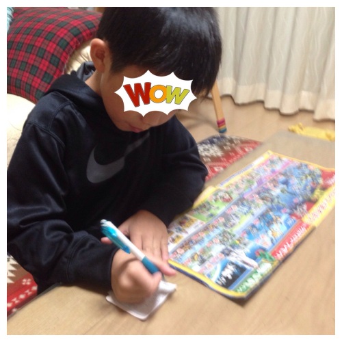 おとうと君、いつになく真剣に勉強中ではなく。。トイザらスのクリスマス用冊子をみてリストアップ中にしても。。真剣過ぎやろ