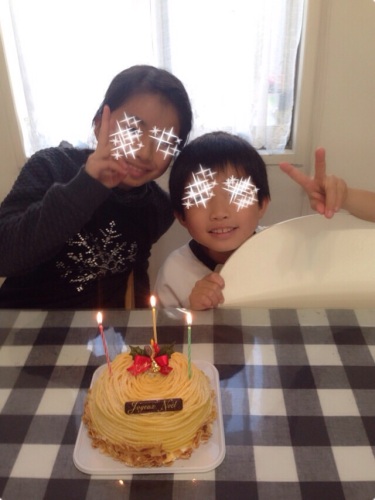 メリークリスマスおやつはケーキ今年はモンブランにしてみました・・姉はあんまりだったみたい晩御飯はピザとシチューと骨付き鳥サンタは来るかな?
