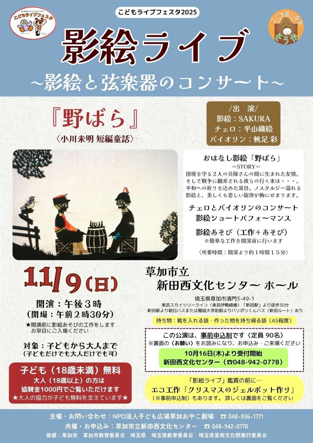 暑かった夏から突然来た秋。9月10月は保育園公演やワークショップが続いています。芸術の…