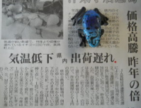 高値のときに出荷するためには。イチゴ栽培 K全国的な寒波による気温の低下が原因の野菜の生育の遅れ のため、とくにハウスで生産される野菜が不足し、高値となっています。ハウス栽培が盛んな〔他所の地域よりも温暖なはずの〕南九州においても その傾向は顕著で、キュウリ・ピーマンやトマトは もとより普段はそれほど気温の影響を受けないはずの ハウスニラの生産量まで減少しているほど。その生育の遅れですが・・・一般的にはひと月以上の遅れ。そして充分に手を尽くされた栽培者でも3週間程度の遅れといったところ。そんななかでも、とくに影響を受けたというのは、やはり例年クリスマス前後の需要が高まる イチゴ栽培 でした。 イチゴ不足を伝えた地方紙 → ちなみに記事中で“価格高騰”や“昨年の倍”という表現が使われているクリスマス前のイチゴの平均価格は、Sサイズ1パック/約300グラムで1149円。昨年同期間は、594円であったとのことですのでたしかに昨年の倍という表現は妥当なようですね。さて、そこでです。新聞で取り上げられたイチゴ生産の話をするならば・・・イチゴ不足で困っている、たとえばお菓子やさんや、ケーキやさん、そして馴染みの市場関係者のために ハウスイチゴ栽培者にとって、ここはいちばん腕の見せどころ的な時期が、到来していることになります。いうまでもなく、いまこの時点で、ハウス栽培者として努力すべきこと、それは 高値の時期に、すこしでも多くの果実を出すということ。そのためには、 栽培している作物に、できうる限りの手を尽くして生育を進めることが必要になる。“鳴かぬなら鳴かせてみせようホトトギス”的に表現するならば、“ならぬなら成らせてみせよう果菜類”みたいな話しになるわけです。その方法ですが、そのための具体的な方法として、 ■ 適正な温度管理に努める〔とくに夜の温度を高める〕 ■ 1株あたりの適正な果実数にする〔着果が多い場合は摘果〕 ■ 換気する場合は、温度を確保しながら換気する ■ 地温を下げないような追肥 の方法を 考える ■ 地温の低い場合でも効くように、肥料の種類を工夫するといった対策をとる。さらに 日射量を多く確保するために、保温用の被覆カーテンを、いつもより早めに開けたりする〔重油がより必要になるのですが〕といった方法などがありますね。手間や経費は いつもよりかかるけれど、ここは将来のためにも経営者としての大事な踏ん張りどころだと考えられておられる方にとっては、やった努力が形となってあらわれそうな状況ですねっ。 大河ドラマ/八重の桜の名セリフ、「ならぬものはならぬ」 ではありますが、こと農業経営に関していえば、このセリフ では、ちょっと困ったことになってしまうかと/笑。「夢で終らせない農業起業」「里地里山複合大汚染」