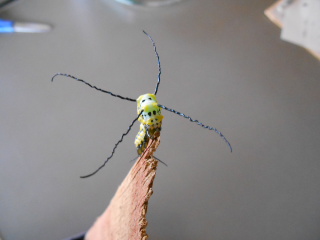 大切にしてるオリーブを喰ってた輩[やつ]は。大切にしている3年もののテラコッタ鉢植えのオリーブ。春になって花が咲き、そのあと結実してきたな・順調にそだっているなと思っていたら、最近になってそのオリーブの葉が極端にすくなくなってきているのに気づいた。そこで。オリーブの茎葉をよくよく観察してみれば、そこにいたのが こいつ。ひげの生えたような顔をした5センチほどのイモ虫。 仮に、4本の触角の交わる中心にある斑点を目だとみたてるとしたら、いっけん 愛嬌のあるとぼけた顔にみえるイモ虫 であった。それにしても、いままで見たこともなかった ひげの生えたイモ虫。しらべてみればイボタノキやネズミモチなどを食べる イボタガという日本では1種しか確認されていないという蛾の幼虫 でしたよ。 わりと珍しいうえに愛嬌があるイモ虫・・・とはいっても、大切に育てているオリーブの葉がなくなってしまったら一大事[5匹もいたので]。そうそうに退散してもらいましたが、庭にあるほかの樹木には目もれず、日本には自生していないオリーブの大切にしている樹にだけいるなんて なんとも皮肉なことでありました。イボダカ。ちなみに成虫は コチラです。 オリーブの育ちが悪いなと思っている方は 注意が 必要かも。そして たとえばオーストラリアなどオリ ーブが自生している地域にいるとすれば、かなりの害 虫視されていることでしょうね、このイボダカ。 「夢で終らせない農業起業」「里地里山複合大汚染」