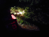 ビールのコンテナケースのうえに、灯りをともした懐中電灯
