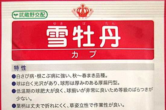 武蔵野交配 雪牡丹カブ 武蔵野種苗園のカブ品種です。