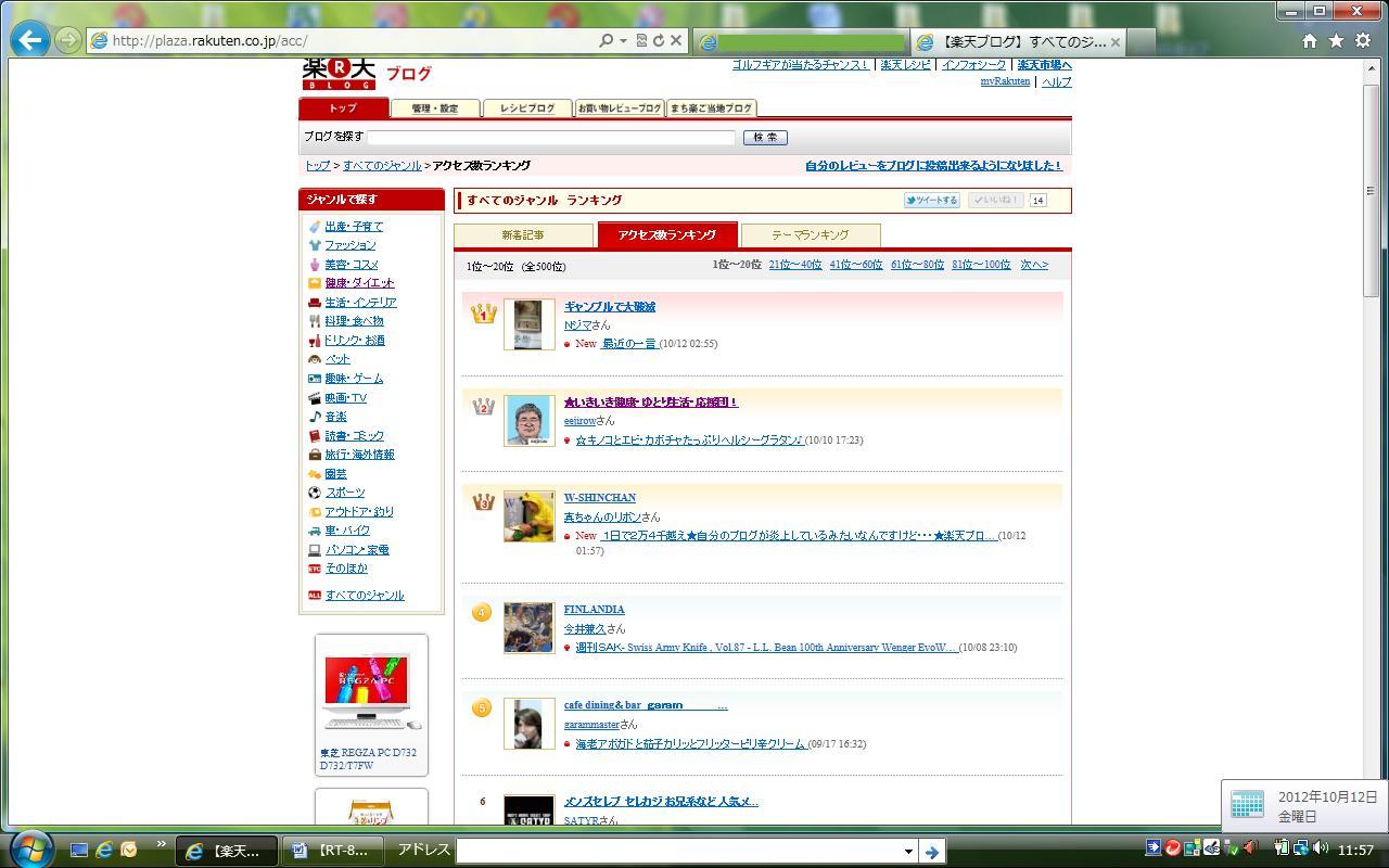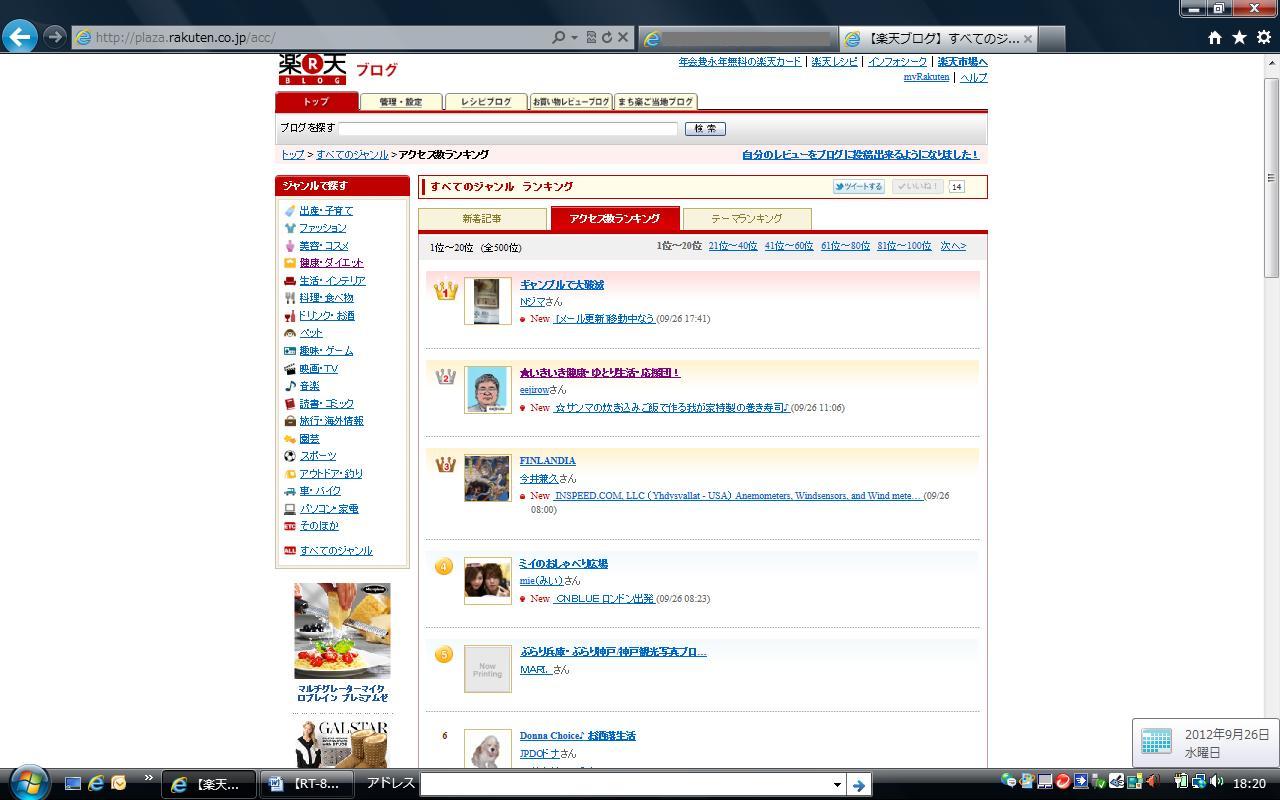【総合第2位】を記録した日(2012.09.24および2012.09.25および2012.10.10および2012.11.25)の画像につきましては