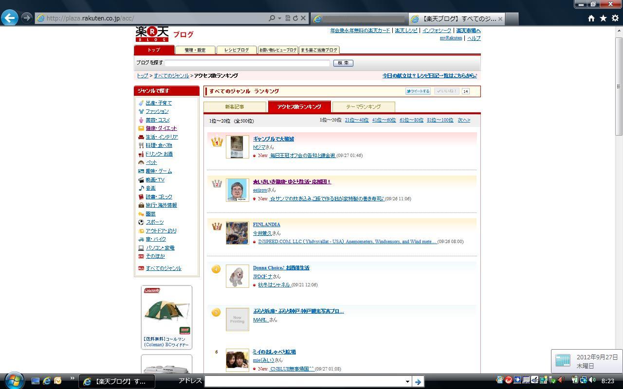 ◆【楽天ブログ】健康・ダイエットジャンルの日別アクセス数ランキング(最新更新版)については
