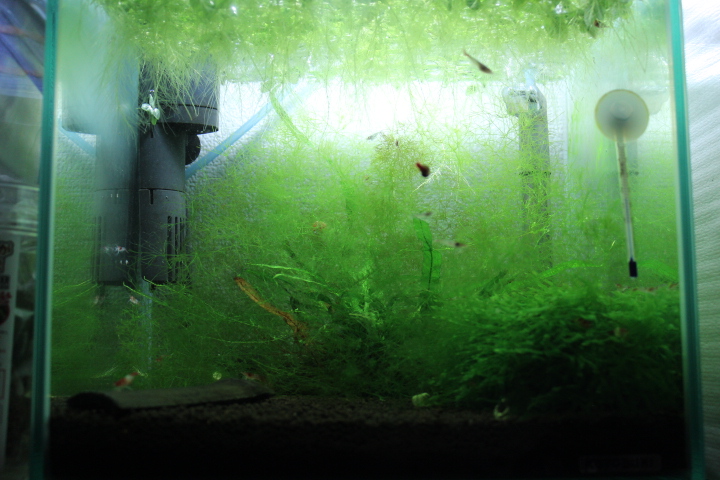 こんばんは最近みなさんの所にお邪魔しても読み逃げばかりですみません。。。なにぶん仕事が忙しくて。。。さて、またもや台風が近づいていますね。今回は直撃しそうなので、かなり用心していますが何も無く無事に過ぎ去って欲しいものです。。。みなさんも気を付けてくださいね。先日にも書いた通り調子の悪い赤水槽からの引っ越しは完了し、後はリセットするだけなのですが、棚卸等があった為仕事が忙しく、まだ完了していません。。。黒水槽はちらほらと稚Beeさんも見られ、まぁ、安定しているのではないかと思います。赤水槽に比べて少し遅れて立ち上げしたはずなので、こちらも正直どうなるか解りませんので少しでも早く赤水槽のリセットは終えておきたいところですね。こちらの水槽の課題は。。。まず増えすぎたモスじゃないでしょうかwまたもやジャングル化してきています。プレモスもいい感じで成長していますがウィローモスがモサモサになっているので恐らく上手く水が回らない所が出来ているはず。。。Beeやシャドーも観察しにくいですしトリミングしないといけませんね。。。もう少しで時間も取れそうなので頑張ります