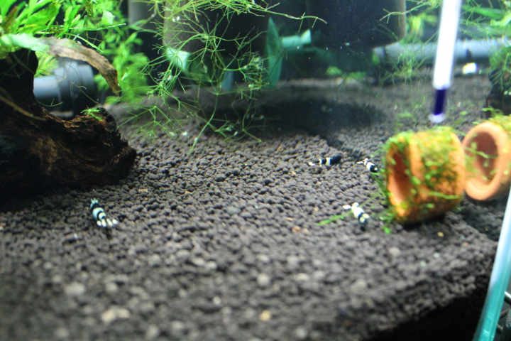 こんばんは~今日は仕事は休みでしたがいつも通り家の用事でバタバタでした。まぁ、久しぶりに少しゆっくり寝る事が出来たので良しとしますか(笑)本日も大したネタはありません。。。手抜きでまいりますw玄関三段ラックの一番下に位置するルリーさんの30キューブ以前から二テラが爆殖していてえらい事に。。。。と言う事で二テラ撤去~!かなり明るくスッキリしましたエビさん達も綺麗に見えます。。。w少し遠いですがママさんも発見する事が出来ました~。稚エビの誕生、楽しみです。簡単ですが本日はここまでwでは、また~