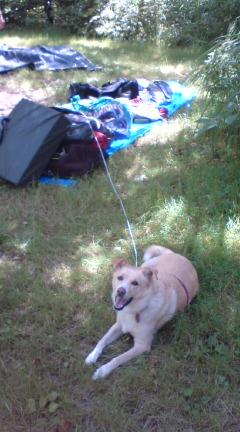 めったにブログを書かない罰か一度書いたブログが消えてしまって気を取り直してもう一度8月8日~8月13日5泊6日でキャンプへ行って来ました~今回のキャンプは、無印良品のやってる南乗鞍キャンプ場人気のキャンプ場で、一度行ってみたかったのです半年も前からネットで予約して今迄、電源付きキャンプ場の経験しかないので今回のキャンプ場は電源が無し~ランタンやタープを新しく購入し準備万端出発~出発日の8日は渋滞を避けて4時起床の5時半出発心配した渋滞も無く、順調に進んで1時頃到着~涼しい~めちゃくちゃ涼しいそうなのです~ここは標高1600メートルにあって、8月上旬でも最高気温が平均27℃最低気温が18℃という関西から見れば天国のような世界~~~~さっそくチェックインして予約したサイトへ広大なサイトの中の犬が泊まれるサイトは決まっていて我が家は、C1のサニタリー近くのサイトへ電気がないので、夜の、母ちゃんのおトイレ行きを考えてサニタリー近くに予約。周囲を木に囲まれていて広いサイトで、サイト自体には満足~さっそく設営開始~良い子で待ってるよ~設営の間は、けんけんは、ドッグポールとワイヤーで繋いで、と~~っても、大人しく待ってました~我が家のテントは寝室になるテントとリビングになるスクリーンテントがくっついた、2ルームテント!これがまた立てにくい時間がかかる立て終わった頃にはけんけん父ちゃんも母ちゃんも汗だく。と言ってもほとんど立てたのは父ちゃん。来年はテント買換えだぁ~何とかタープを立て終わった頃に小雨~おお~ギリギリセーフ~キャンプ場にあるお風呂に母ちゃんは入ってその間に父ちゃんは、けんけんとお散歩~母ちゃんがお風呂から上がって、父ちゃんと交代~この日はバーベキューにするつもりが雨がひどくなってきて明日に延期~タープの下で、バーナーを使ってインスタントカレーを温めて食べたよ~けんけんは母ちゃん手作りご飯を冷凍した物を温めて食べたよ~ゴロゴロがひどくなってきたので寝室の方へ避難して情けない~顔で。。初日は早目に就寝~明日は晴れるといいね~