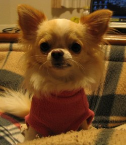 昨日は旦那と妹(予定)についてあまり話せませんでした。今日が最後の山場です。今朝出かける前に(旦那は今日まで休み)「今日の夜、じっくり話そうね。」と念を押して家を出ました。旦那は未だに「モモが可哀想」といっています。旦那もモモが可愛くて可愛くて仕方ないからそういう感じで言うのだと思いますが、我侭モモにとって、今の状態のままでよいの??とあたしは思っています。みなさんのおうちのチワワンは毎朝寝起き良いですか??うちのモモは「モモちゃん おいで・・・」なんて優しい言い方じゃ起きて来ません。「ももちゃん」「ももちゃん!」「ももちゃん!」「ももちゃん!!」「もも!」「もも!!」「もも!!」「もも!!!!」「もも!!!!!!!!」まあ、朝から「もも、モモ」と連呼しっぱなし・・・別に冬だからじゃないですよ。四季は全く関係なし・・・寝起きが悪いのは誰ににたのやら・・・(って。。。。あたしか・・・)普段から、旦那とかお義母さんが呼んでも来ない事度々。・。。。↑の人達、完全にバカにされています。溺愛されすぎて、甘えちゃんになっているので、妹(予定)が来れば、↑の点も解消されるかな??なんて思っていますが、妹(予定)も真似したら怖いです・・・爆甘えちゃんって言っても、独占欲が強いわけではありません。実家の犬を抱いていても、自分も自分も~なんてまとわり付いてきませんし、そこら辺はクールガールなんですよね。(かなり寂しいわたし・・・)モモの場合の甘えちゃんは、甘やかされすぎて、人間の事をバカにしすぎ。。。って事なんです。お義母さんはモモの事が可愛くて可愛くて甘やかしていますが、それがモモにとってよくない事が解らないんです。だから、あたしとモモとお母さんが居る時は、お母さんが「モモ!」って呼んでも、絶対にお母さんのそばには行かないです。あーあー一方通行の思い。見ていて、可哀想になります。フードの件、貴重な情報を有難うございました♪そろそろ無くなるので、今日にでもショップに行って探して来ようと思っています♪妹(予定)の所のブリーダーさんはニュートロを与えているそうなので、ニュートロか、ボッシュにしようかな??と思っています。ニュートロ・ナチュラルチョイス犬用センシティブ チキン&ライス・小粒(間接サポートでコンドロイチンとグルコサミンが入っています。)boschハイプレミアムアダルトミニドッグフード↑小型犬の洋服屋さん ランキングに参加してますぅ~応援お願いします。 応援お願いします (*- -)(* _ _)ペコリ 小型犬のセーター屋さん商品沢山あります。サイズはXXSサイズからMサイズまで新作近日UP予定数枚です。ぐち’sおまかせニットはオーダーストップしてます。BELLのニットはお待たせしません。完成品のみの販売なので、入金確認後、すぐの発送になってあります。お客様アルバム1、お客様アルバム2、お客様アルバム3、お客様アルバム4、お客様アルバム5、お客様アルバム6にカワイイモデルさん、沢山いらっしゃいます♪ ↑小型犬のセーター屋さん BELLはコチラ