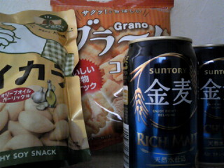 モラタメでサントリー酒類の「金麦」350ml×24本が当たりました友人を自宅に招いて早速飲み会♪友人もダイエット中だと知っているので、お誘いして低カロリーなおつまみで飲みましたよグラーノとソイカラというスナックです。実はソイカラもモラタメでお試しした商品です。画像に写っているオリーブオイルガーリック味とのり納豆味がありましたが、両方お試ししちゃいました。さて金麦ですが、ビールとあまり変わらないおいしさでごくごくいけちゃいました。二条大麦の中から、サントリーさんの基準で厳選した「旨味麦芽」を全麦芽の50%以上使用していたり、天然水で仕込んでいたりするんだそうです。なるほど、だからうまみを感じるんですね。そして、ソイカラのほうはオリーブオイルガーリック味はにんにくの風味が効いていて、食べていて満足感がありました。のり納豆味はシソの風味が感じられて、納豆が好きではない人でもおいしくたべられそうな味でしたよ。グラーノはサクサク感がおいしかったです。どのスナックも低カロリーなのでおすすめです。金麦との相性もバッチリで、楽しい飲み会となりました