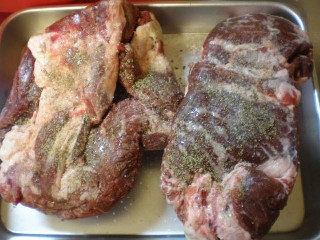 さーてまだまだ続く正月料理(笑)貰い物の鹿肉。塩・コショウにおろしニンニク・しょうが、ハーブ(ローズマリーとイタリアンパセリとセージとタイムね)とワインに漬けて2日冷蔵庫で眠らせました。赤ワインの色ですっかりまっ黒。 ハーブ類は鉢上げしたものを利用。 タマネギとか芋とかを下に敷いてオーブンへGO!180度くらいでのんびり焼きました。 出来上がりの立派さにちょっと期待したんですけど。。。 ちょっと固い‥。焼きすぎではないんだけど、肉そのものの問題かな。。。 今年のお汁粉。横着してとらやのを買いました。甘すぎずちょうど良い感じ。 お餅は親戚の家で搗いたものを焼きました。餅はやはり機械で搗いたものよりも人間がついたものの方が格段に味が良く感じますね。ちなみに私は昔から雑煮よりもお汁粉を食べると正月という実感がわくタイプです。 最後に‥ブログをさぼってるとその時々の詳しい感想とか、感動を写真を見ただけでは忘れてしまうことに今更ながら痛感しました。まめに更新しないとね!