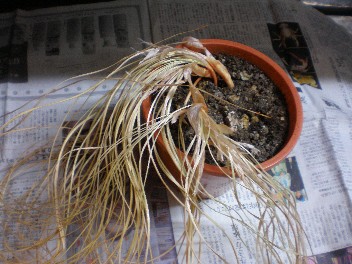 ごきげんよう。久しぶりの更新でございます。ベランダの植物たちも続々と活気を取り戻し、早くも初夏を感じさせる今日この頃、皆様はいかがお過ごしでしょう? 外のハーブたちは、早くも異常な増殖を見せるヤロウを先頭に元気そのもの(タラゴンだけはいまだ芽吹かず…冬越し失敗か。。。)。落葉して寂しくなっていたサンショウの木にも青々とした葉が戻りました。そろそろ鉢あげしていたローズマリーやレモンバーベナも外に出そうかな。 今週末はベランダの整理に終れました。 なお今年は郊外の知り合いから畑を借りる予定で、そこでシシリアンルージュや香菜を育てるのでベランダ菜園はハーブ中心に縮小の予定です。 写真はサフランの鉢です。地上部が綺麗に枯れたのを見計らって球根を掘りあげます。 堀り上げてみると若干痩せているものの、分球して増えてますね。二個の球根が8つくらいになったかな。それにしても片方を痩せすぎかもしれません。今年もちゃんと開花してくれればいいのだけど…。もう少し肥料を与えるべきでした。 紙箱の中で陰干しして、紙袋に入れて8月末まで保存します。今年は収穫が増えてパエリアでも作れればよいですね。
