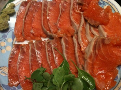 冷凍庫に三ヶ月寝かせてあったトキシラズをお刺身にして食べました。 畑でとれたルッコラと酢飯がよく合いました。 こちらは畑でとれたキュウリと小ナスを麹にあえたもの。やっぱりこういうシンプルなのが一番ですね。
